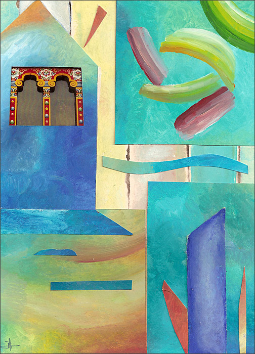 , 8 mai 2006, 22 h (2006). Huile sur carton, collages. 218 x 295 mm.- Béatrice Chantelat
