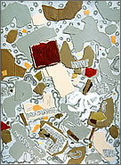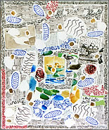 noir et blanc. Pratique actuellement des collages de papiers déchirés.