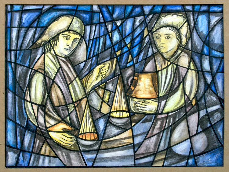 "Apothecaries" Model for a stained glass for a private interior decoration.