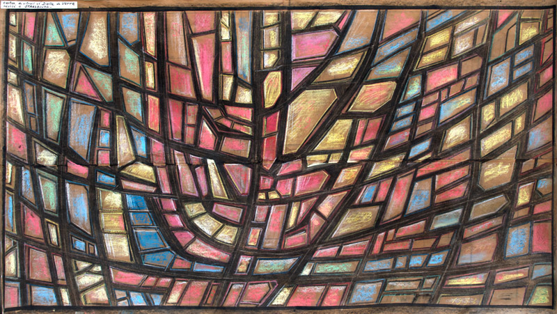 Carton d'un vitrail en dalle de Verre . Réalisé.