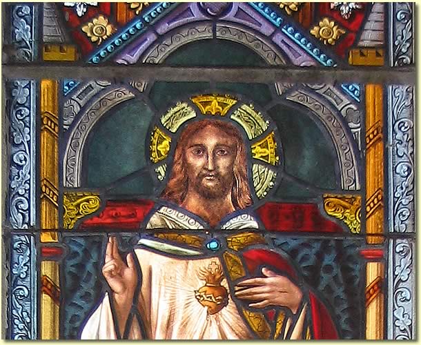 de vitrail - Visage du Christ : peinture sur verre de Raymond Dumoux Eglise du XIXè s. de Saint-Eusèbe (Bourgogne) |